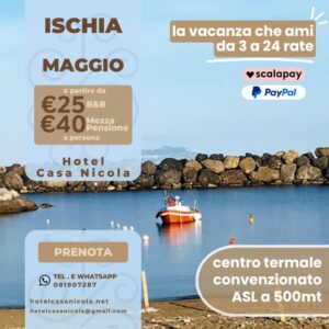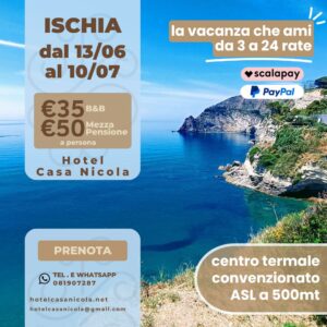 "Pensione famigliare senza troppe pretese ma con tutto quello che serve tranne il bidet, bella la piscina , menzione speciale per la cucina e le torte , posizionata in zona molto tranquilla , di fianco alla fermata dell’autobus, 700/900 metri in discesa da Sant’Angelo, quindi per Ischia posizione super"