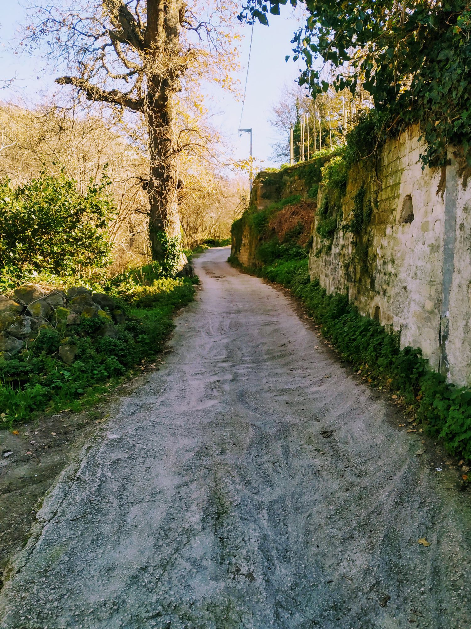 Nella piazza c’è la piccola chiesetta e accanto ad essa la stradina che ci porterà a Piano Liguori.