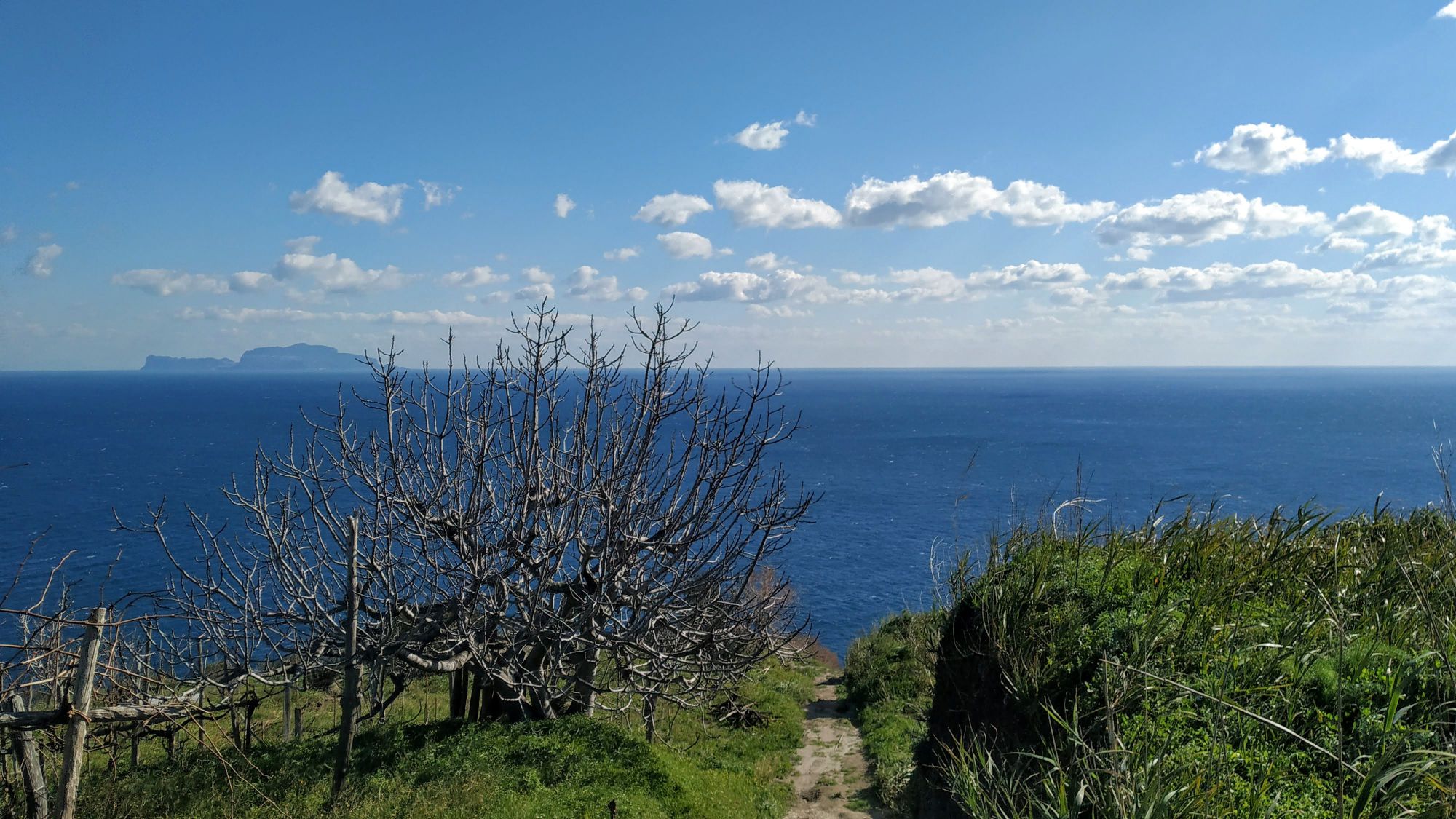 Iniziamo il cammino, la strada è stretta ma asfaltata, neanche il tempo di partire e già sulla sinistra vedrete il panorama della baia di Carta Romana e del Castello Aragonese, proseguendo fino a punta Campanella.