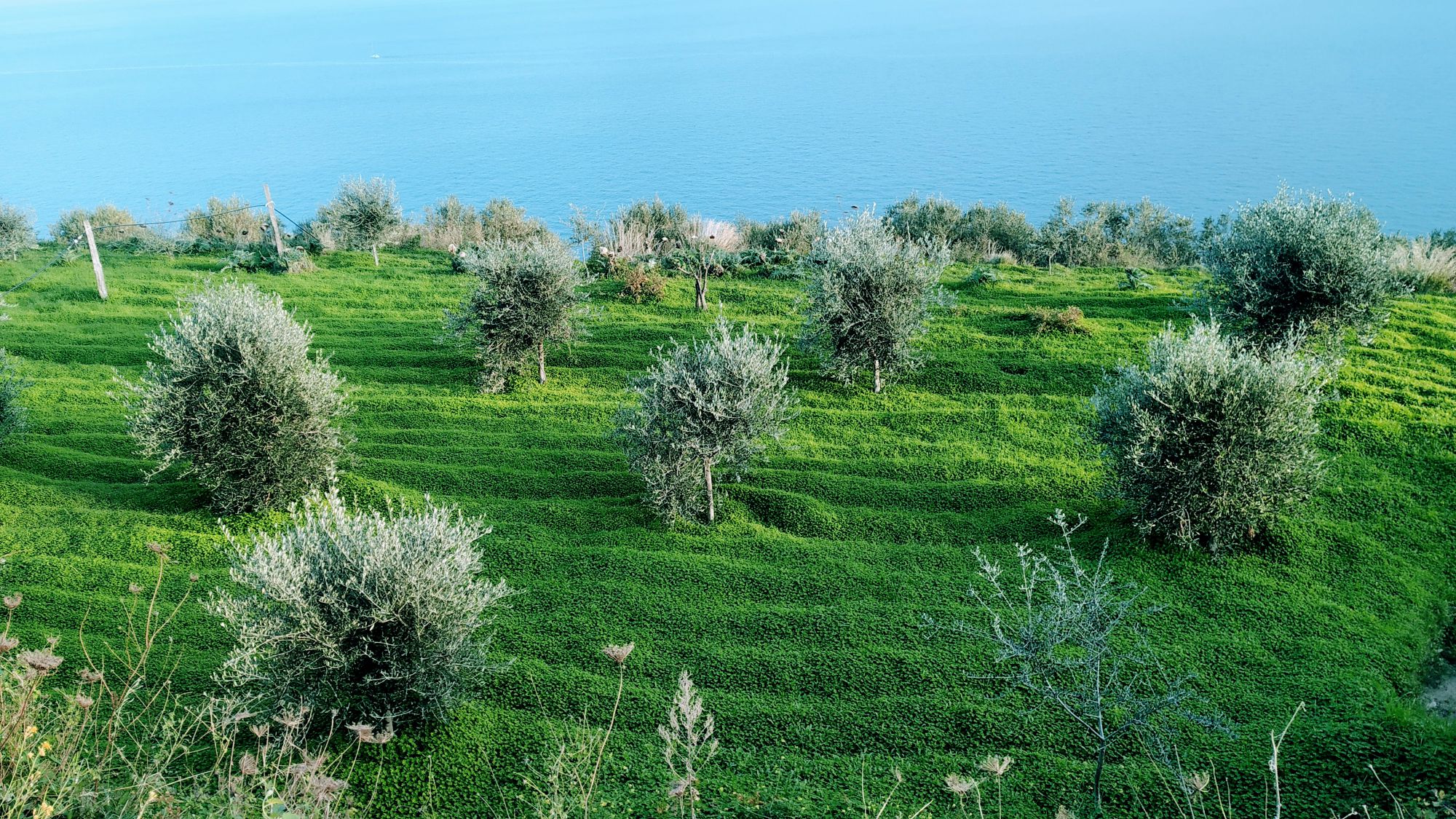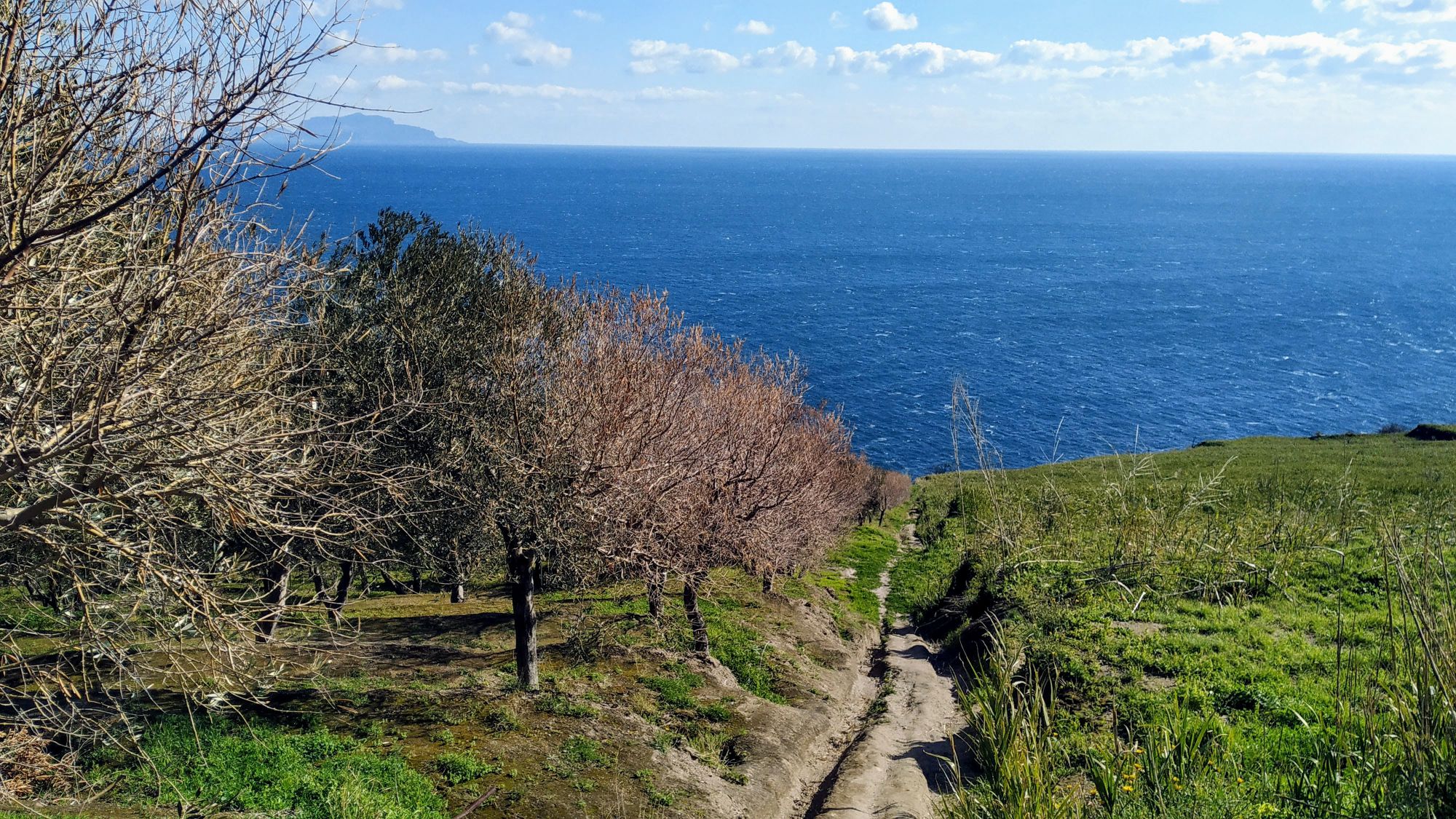 Scendendo verso la punta del promontorio di San Pancrazio, costeggiamo terreni coltivati con ortaggi di stagione, un uliveto tutto a terrazze che termina a strapiombo sul mare e vitigni esposti al sole e al vento, terra lavorata ancora oggi con grandi sacrifici, ma che dà prodotti dai profumi e sapori unici.